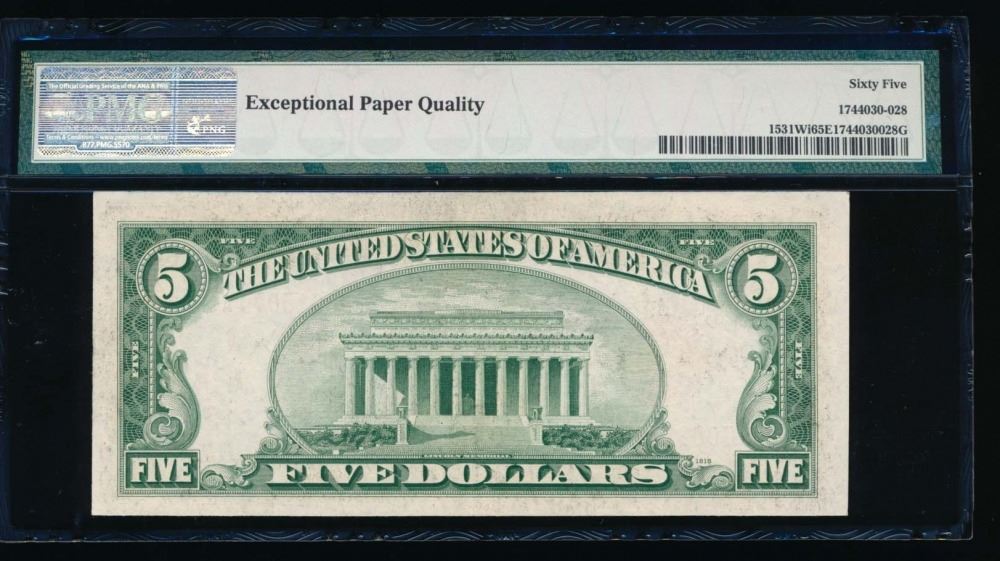One 1928F $5 Legal Tender Note PMG 65EPQ.