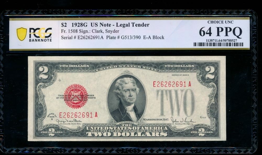 One 1928G $2 Legal Tender Note PCGS 64PPQ.