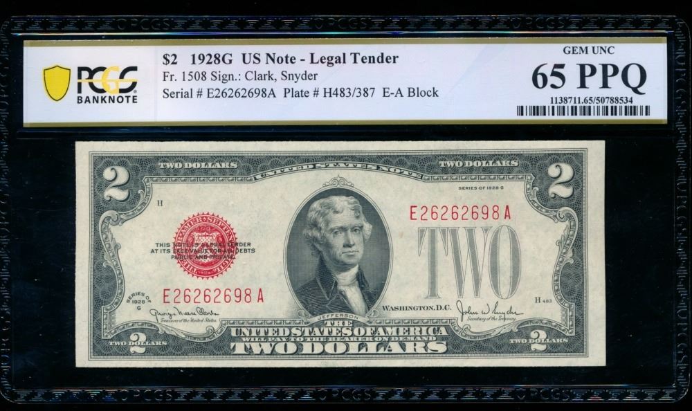 One 1928G $2 Legal Tender Note PCGS 65PPQ.