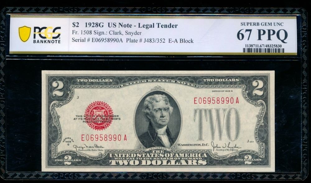 One 1928G $2 Legal Tender Note PCGS 67PPQ.
