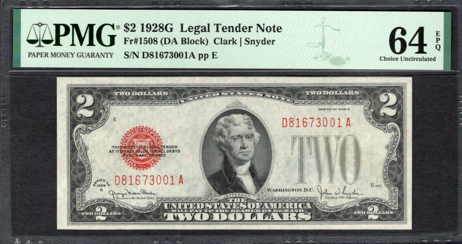 One 1928G $2 Legal Tender Note PMG 64EPQ.