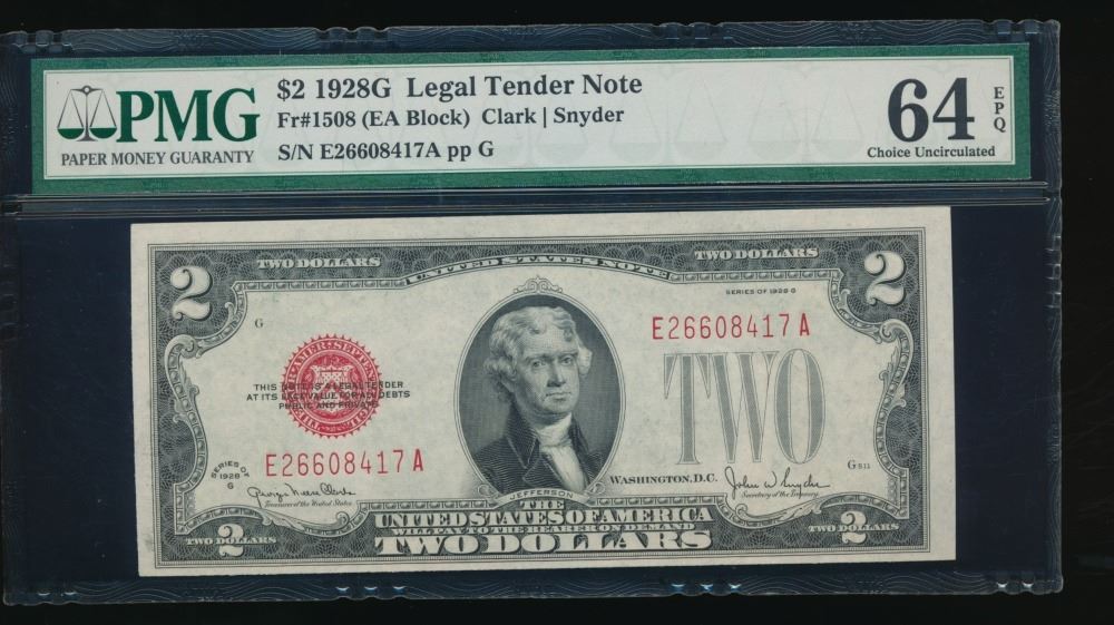 One 1928G $2 Legal Tender Note PMG 64EPQ.