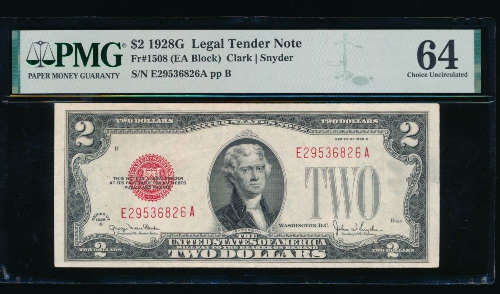 One 1928G $2 Legal Tender Note PMG 64.