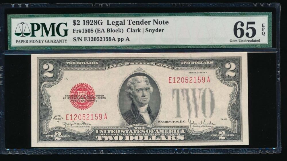 One 1928G $2 Legal Tender Note PMG 65EPQ.