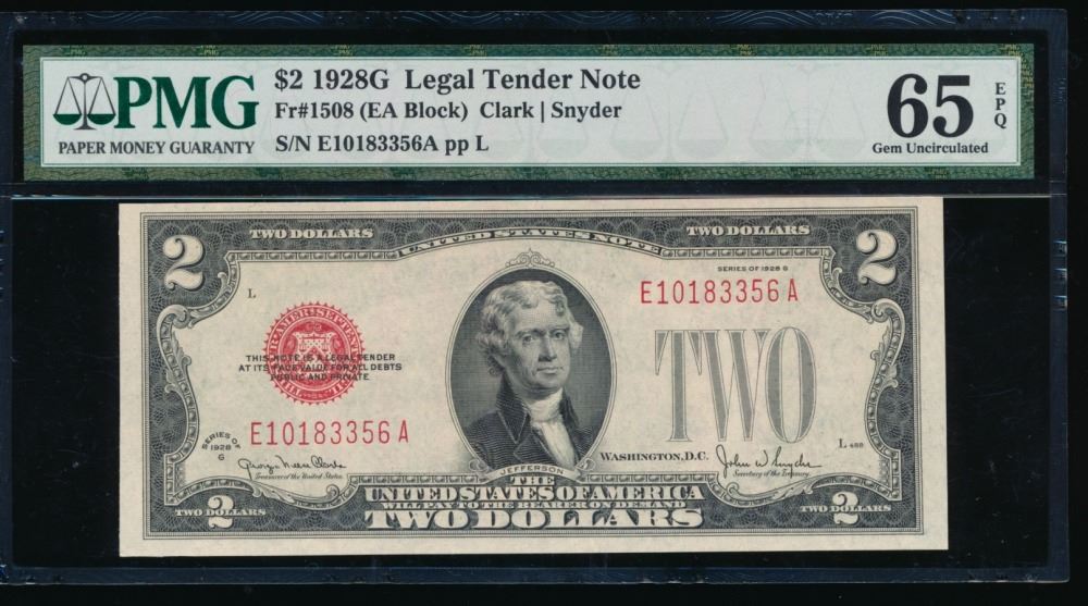 One 1928G $2 Legal Tender Note PMG 65EPQ.
