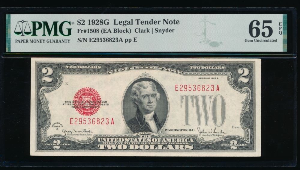 One 1928G $2 Legal Tender Note PMG 65EPQ.