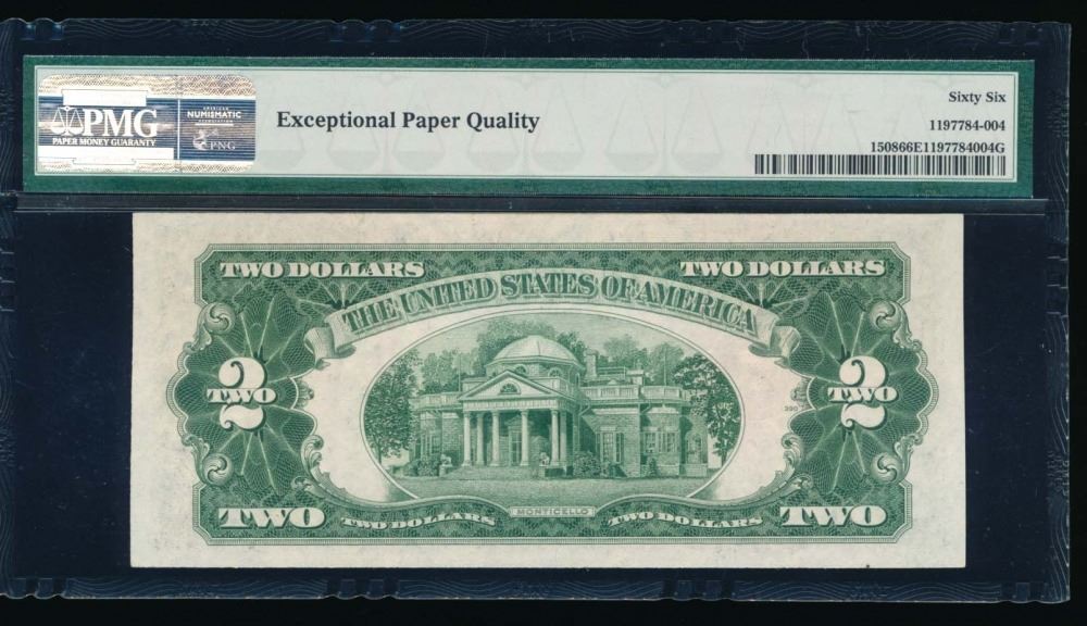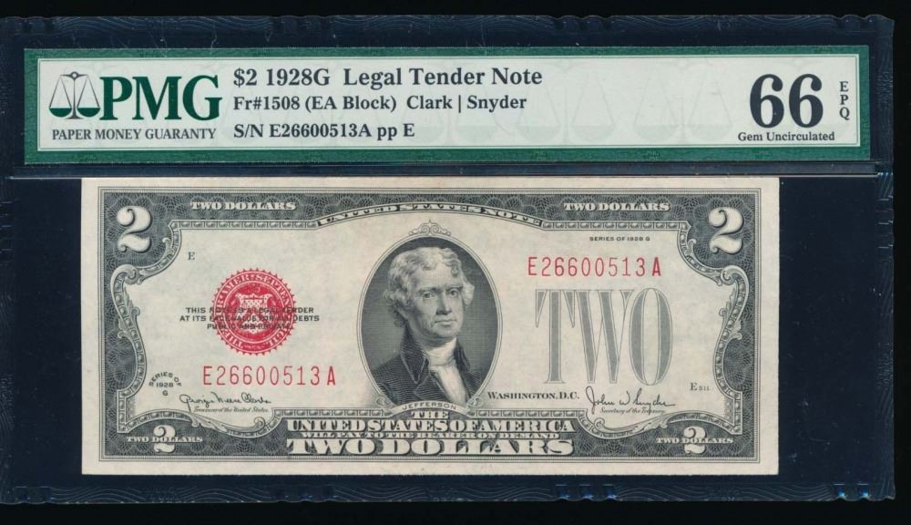 One 1928G $2 Legal Tender Note PMG 66EPQ.