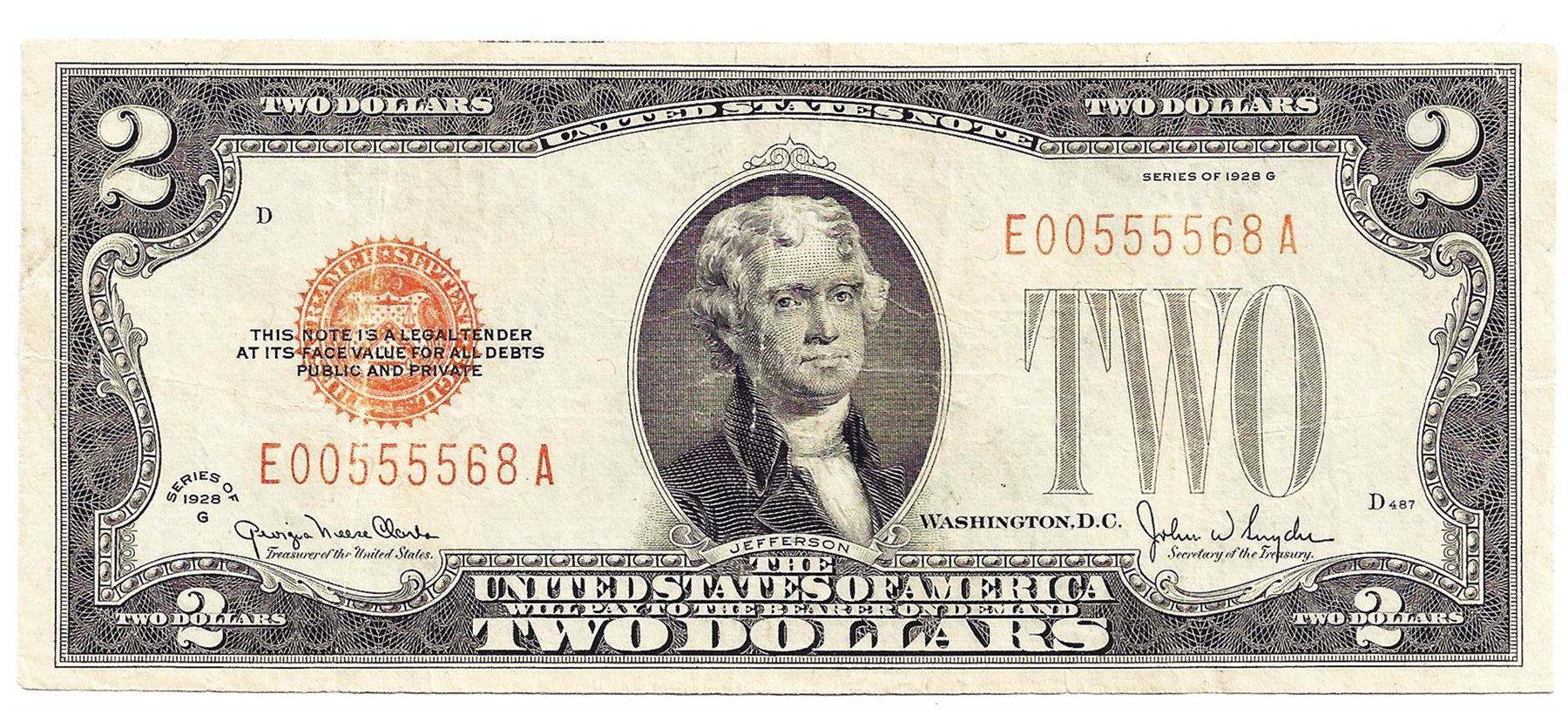 One 1928G $2 National Currency Note