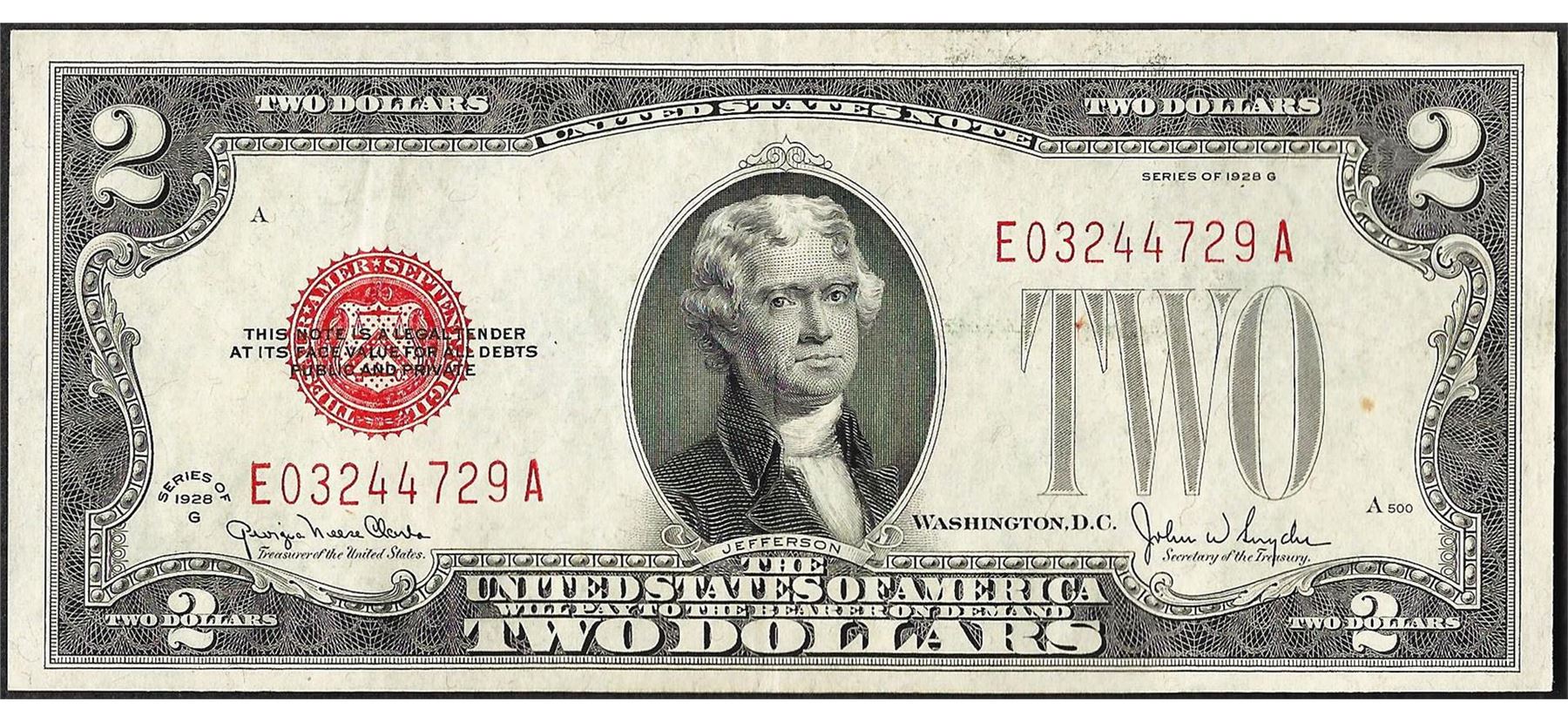 One 1928G $2 Legal Tender Note.