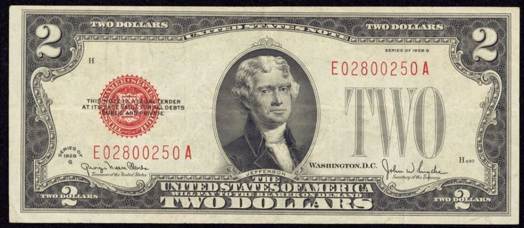 One 1928G $2 Legal Tender Note .