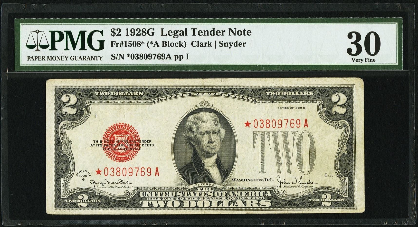 One 1928G $2 Legal Tender STAR Note PMG 30.