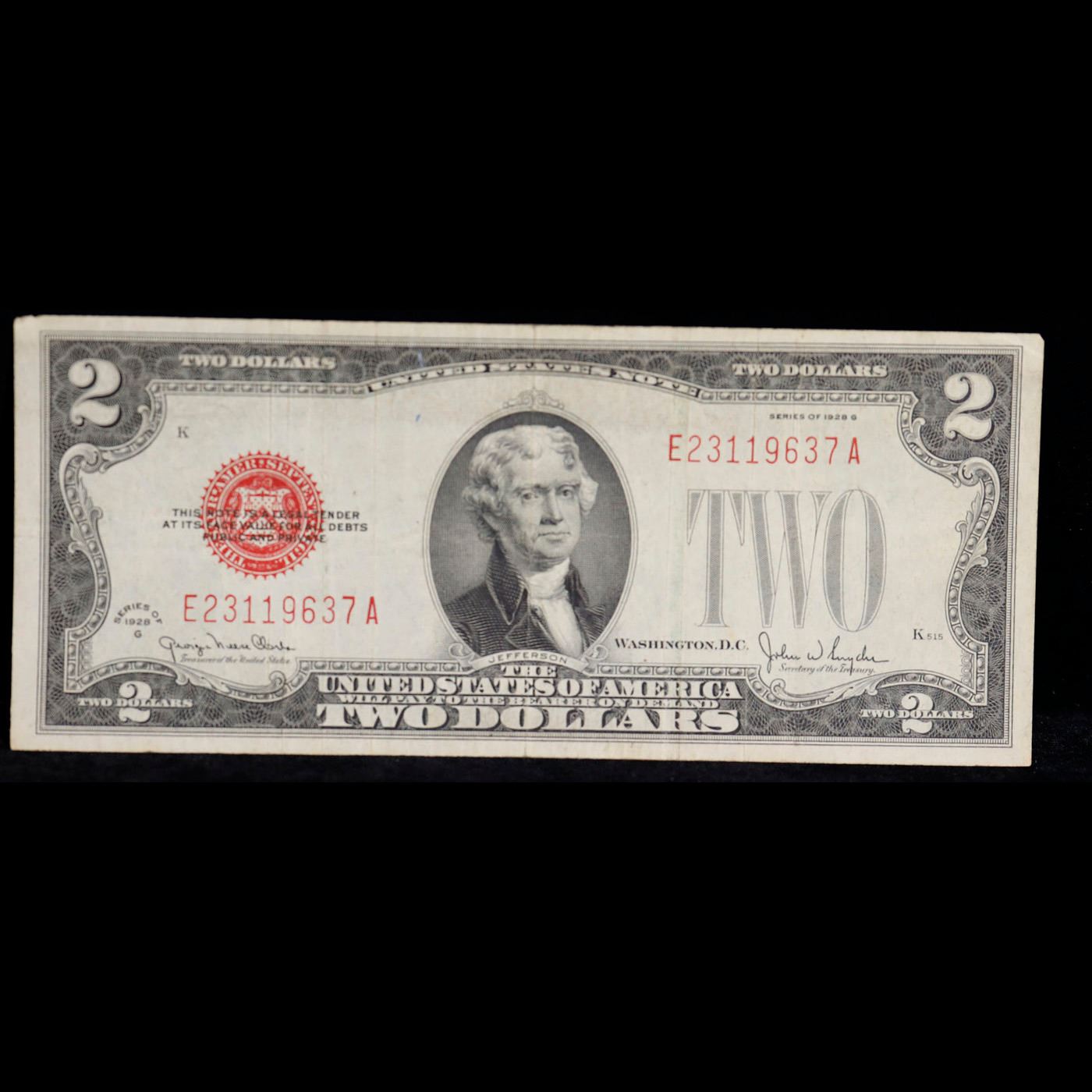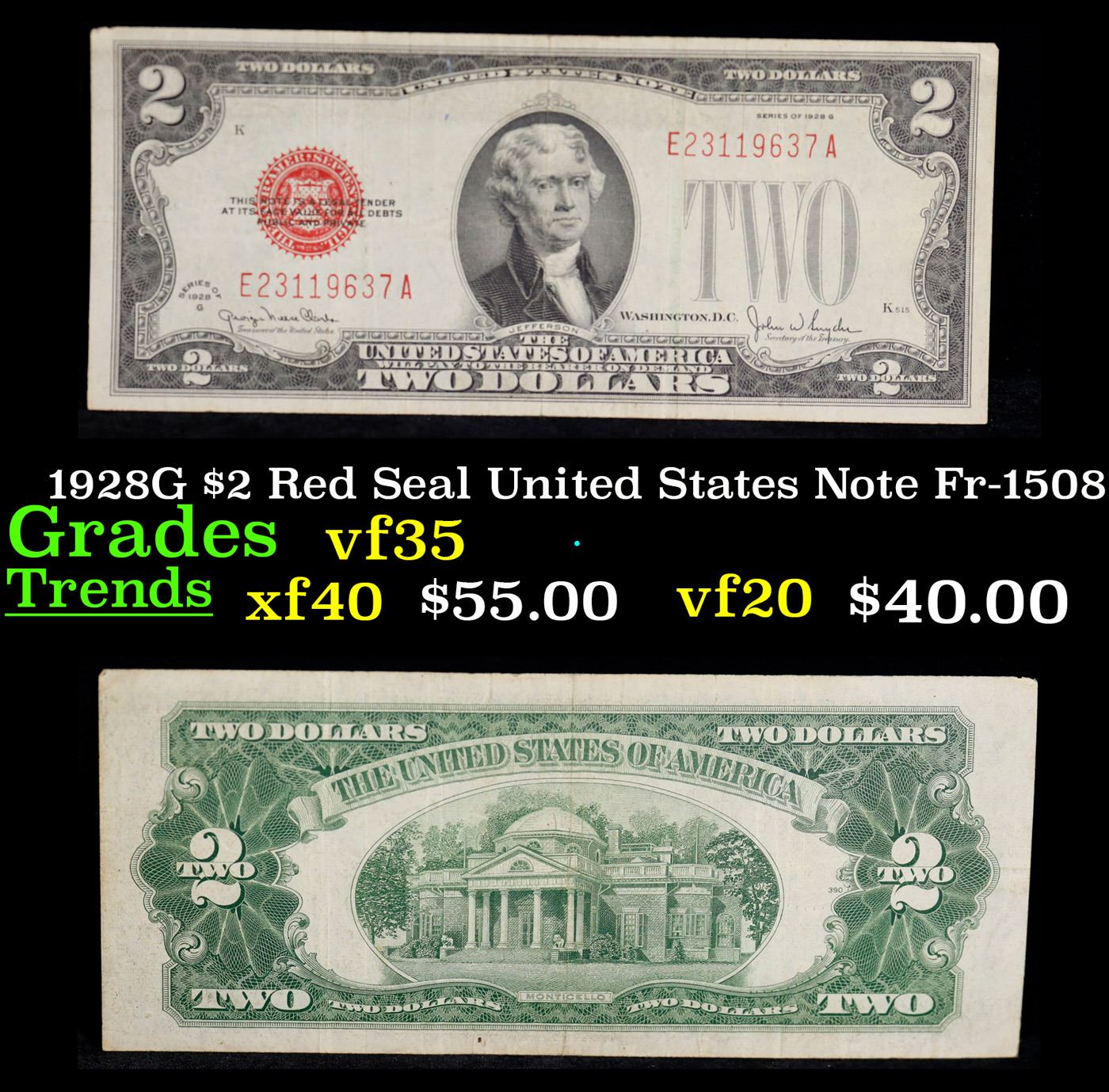 1928G $2 Red Seal United States Note Fr-1508 Grades vf++.