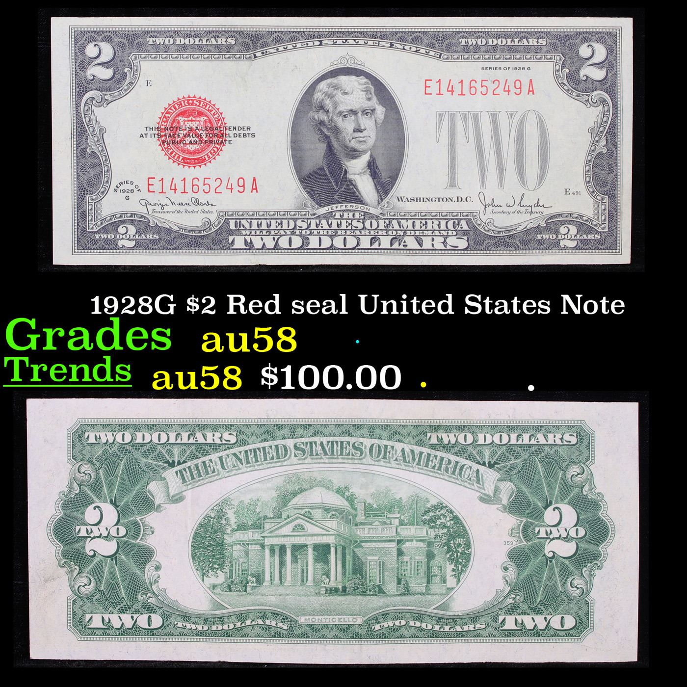 1928G $2 Red seal United States Note Grades Choice AU/BU Slider.