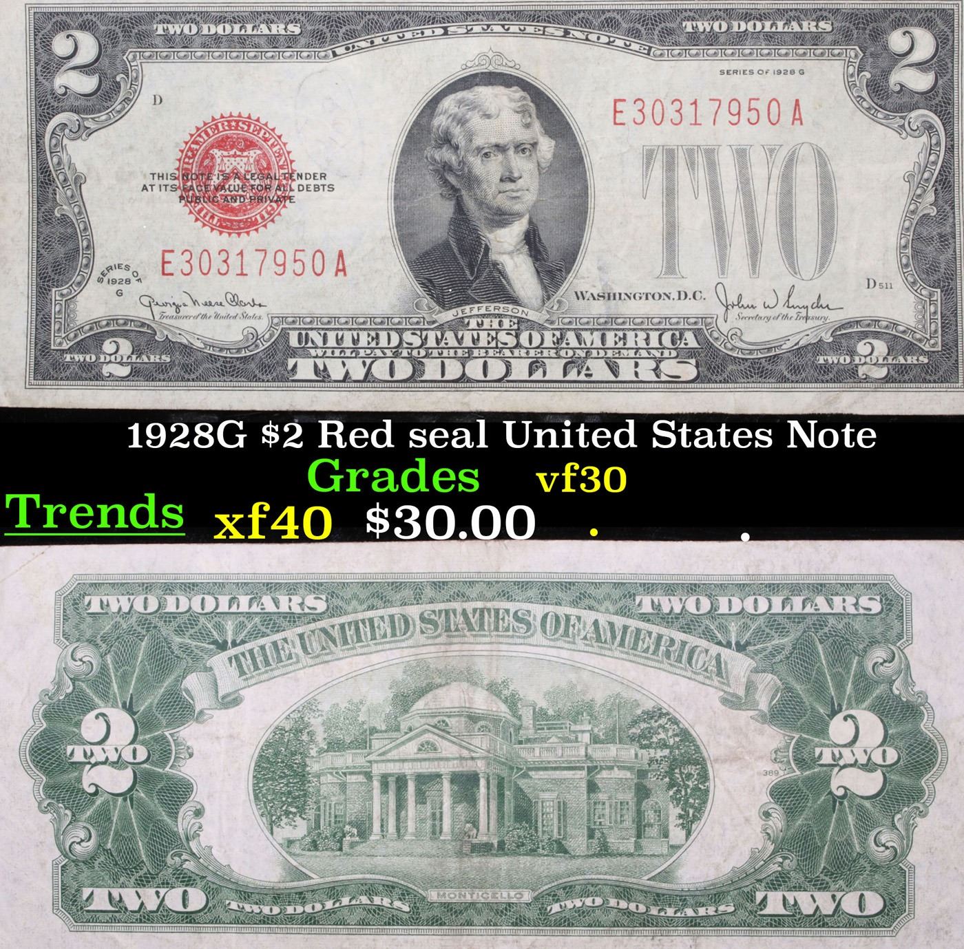 1928G $2 Red seal United States Note Grades vf++.