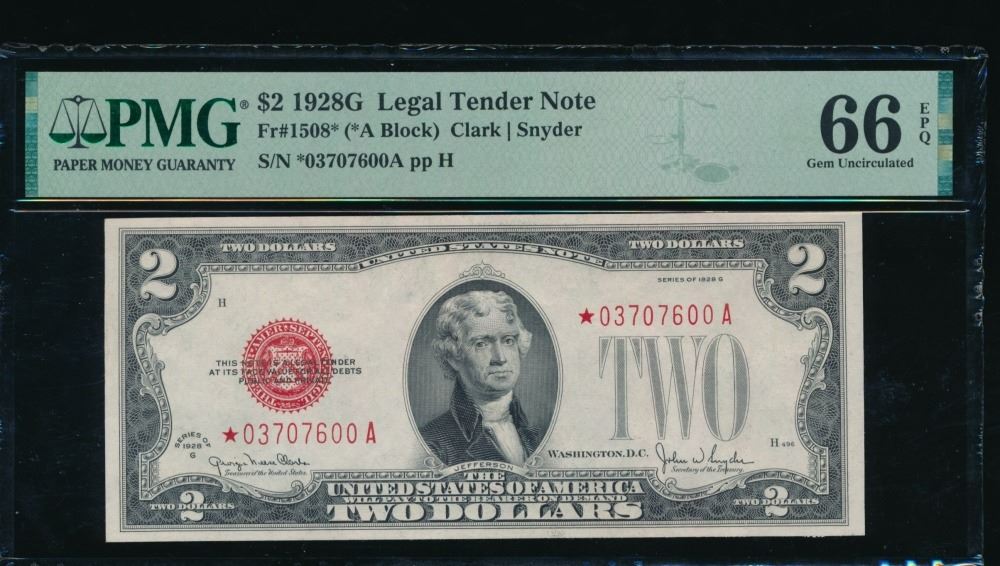 One 1928G $2 STAR Legal Tender Note PMG 66EPQ.