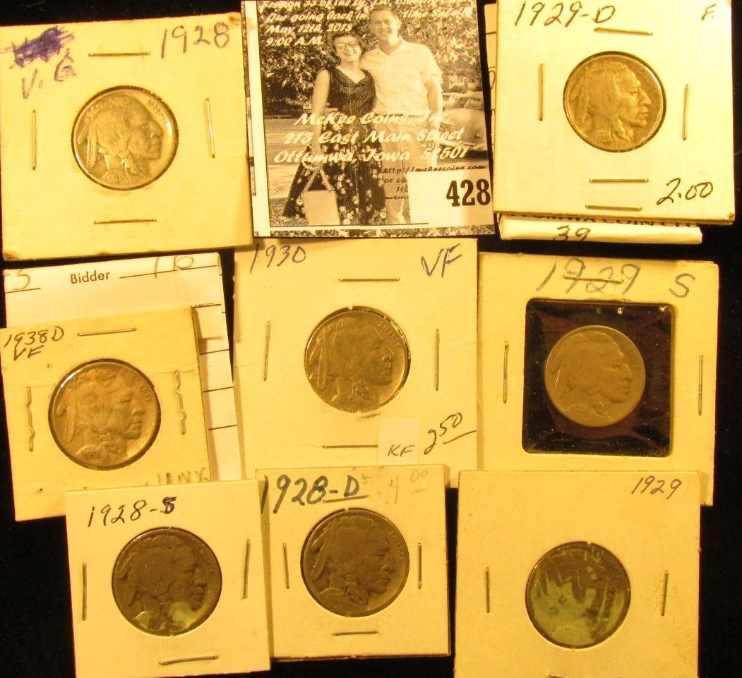 1928P, D, S, 29P, D, S, 30P, & 38D Buffalo Nickels, all carded with grades up to VF.