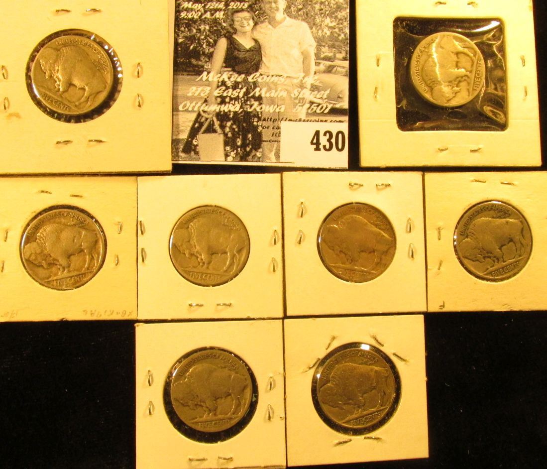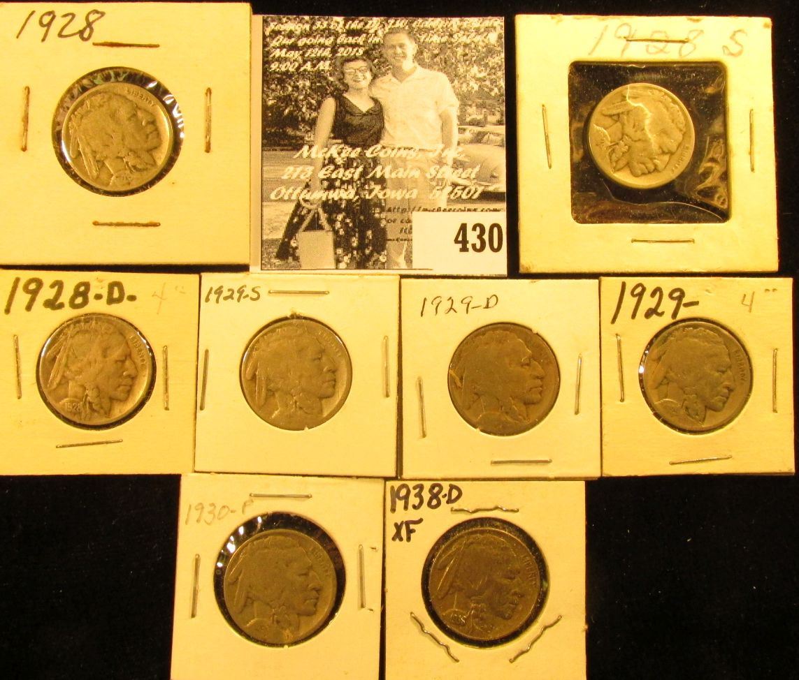 1928P, D, S, 29P, D, S, 30P, & 38D Buffalo Nickels, all carded with grades up to VF.