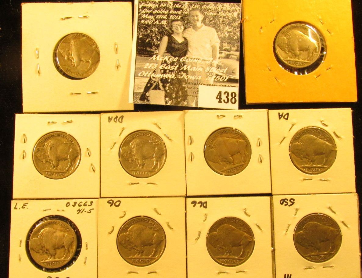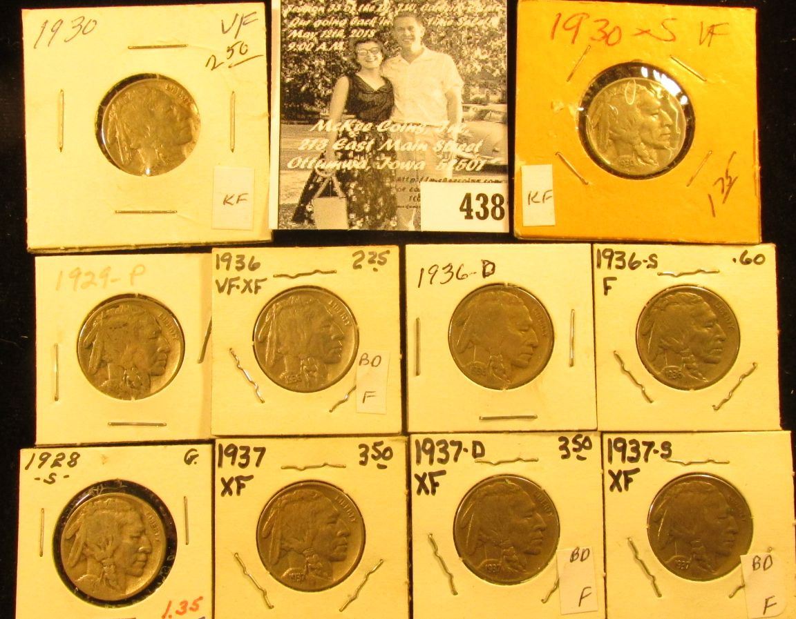 1928S, 29P, 30P, S, 36P, D, S, 37P, D, & S Buffalo Nickels, all carded with grades up to VF-EF.