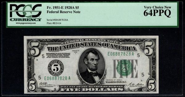 One 1928a $5 Richmond Federal Reserve Note PCGS 64PPQ.