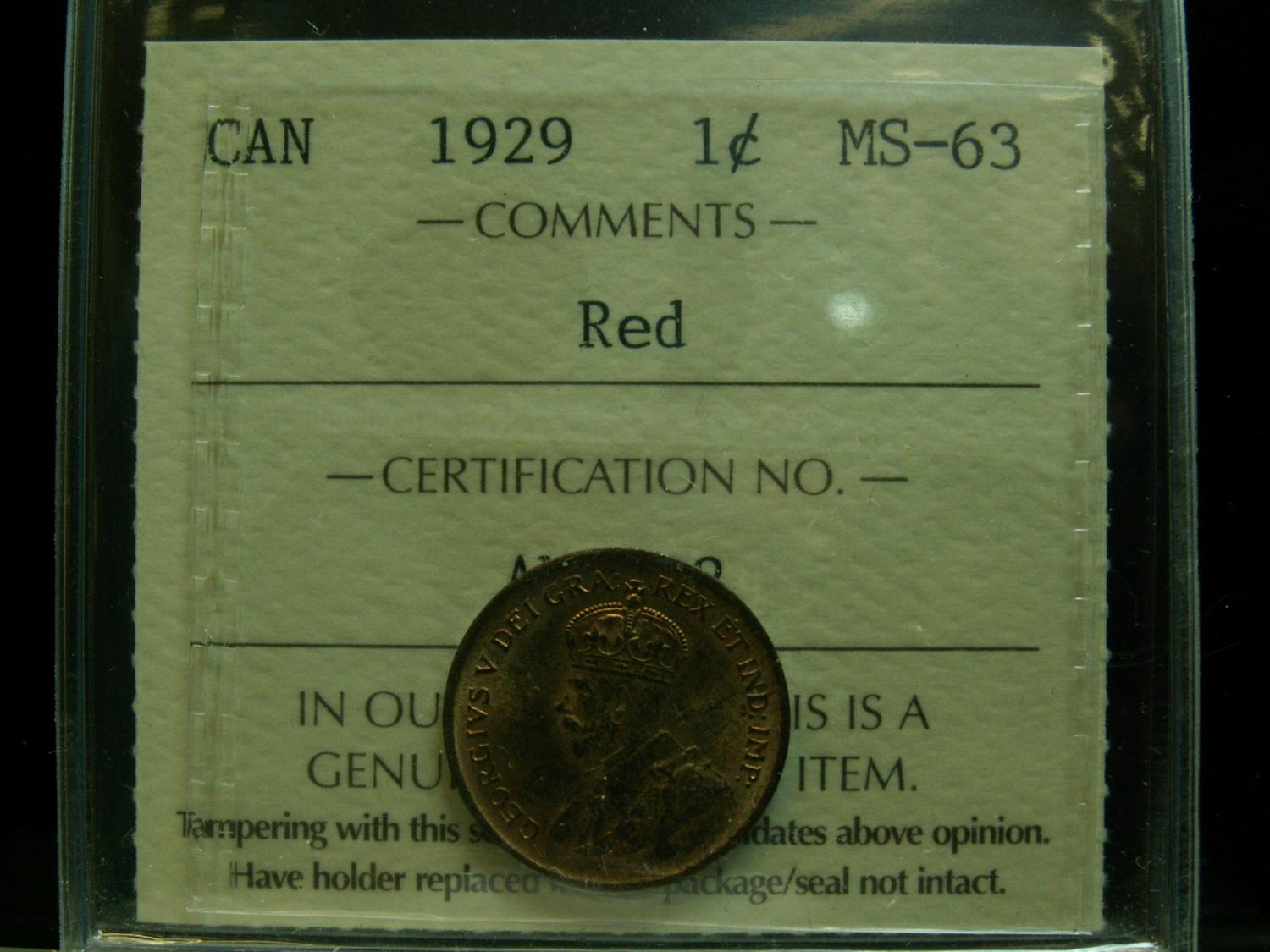 1929 1¢ ICCS MS63 Red