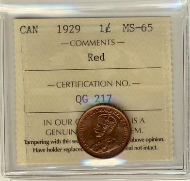 1929 1¢ ICCS MS65RD.100% Rd. Gem example. Tied for finest.