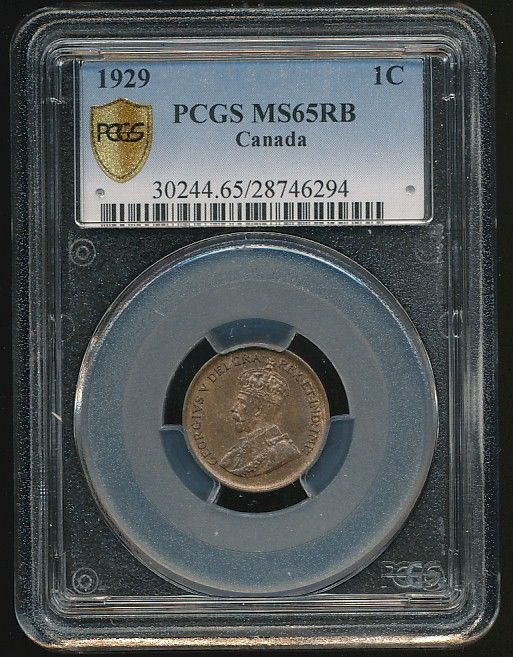 1929 1¢ PCGS MS65RB. Strong lustre.