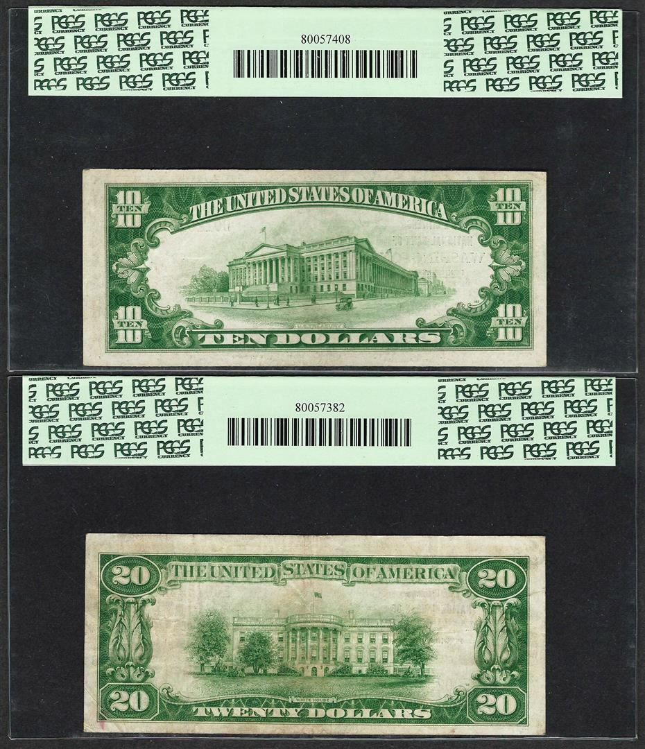 1929 $10/20 Citizens NB Washington, PA CH# 3383 National Currency Notes PCGS VF35