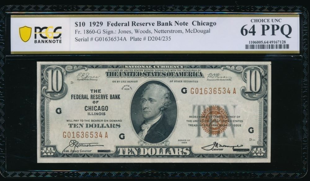 One 1929 $10 Chicago FRBN PCGS 64PPQ.