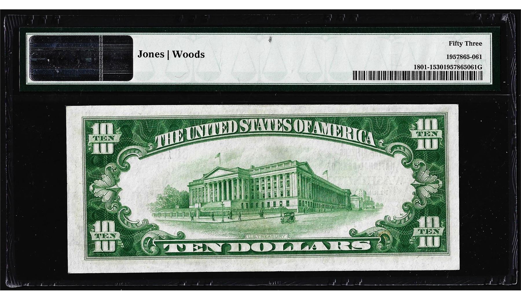 1929 $10 Citizens NB Washington, PA CH# 3383 National Note PMG About Uncirculated 53
