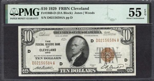 One 1929 $10 Cleveland FRBN PMG 55EPQ.