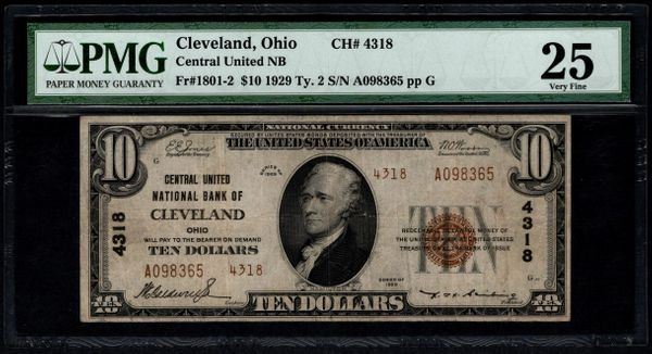 One 1929 $10 Cleveland National Bank Note PMG 25.