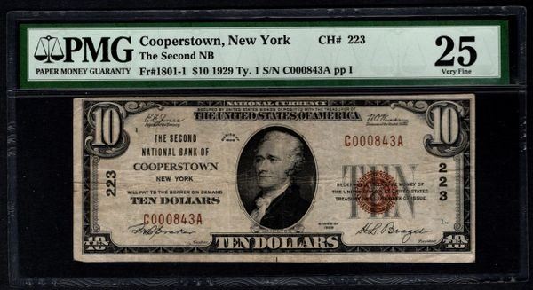 One 1929 $10 Cooperstown National Bank Note PMG 25.