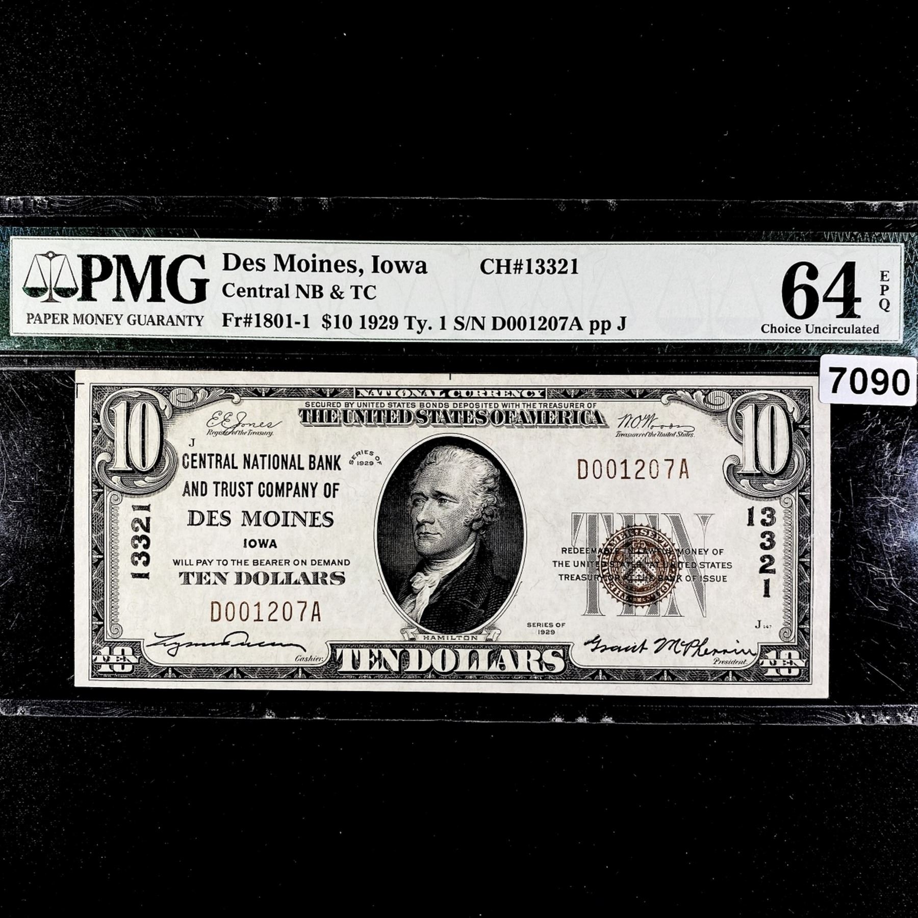 1929 $10 Des Moines IA National Bank Note PMG-64