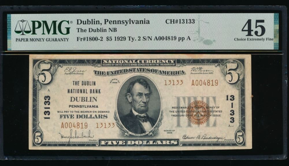 One 1929 $10 Dublin PA National PMG 45.