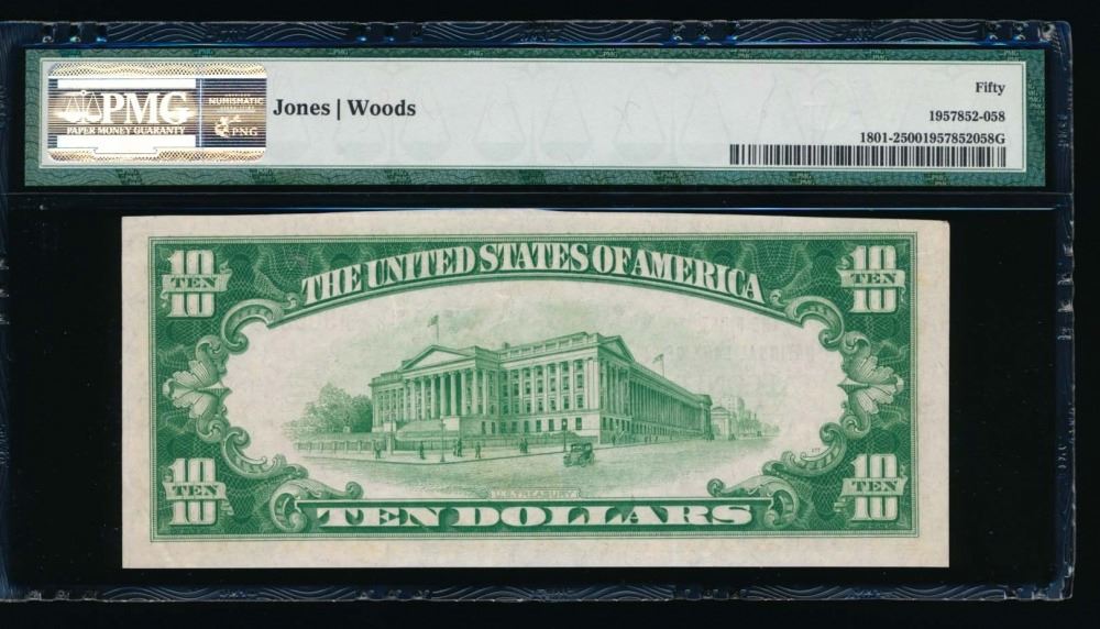 One 1929 $10 Falconer National Bank Note PMG 50.