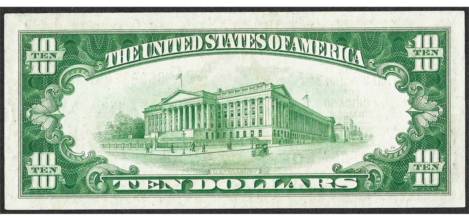 One 1929 $10 Federal Reserve Bank Chicago.
