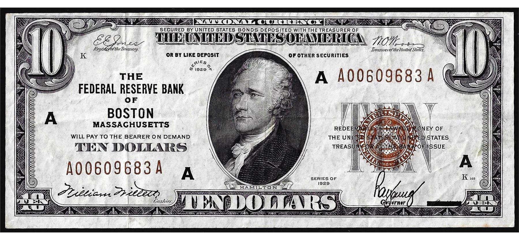 One 1929 $10 Federal Reserve Bank Note Boston.