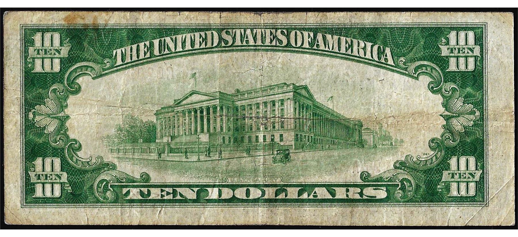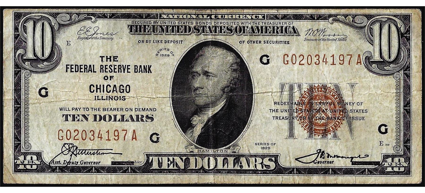 One 1929 $10 Federal Reserve Bank Note Chicago.
