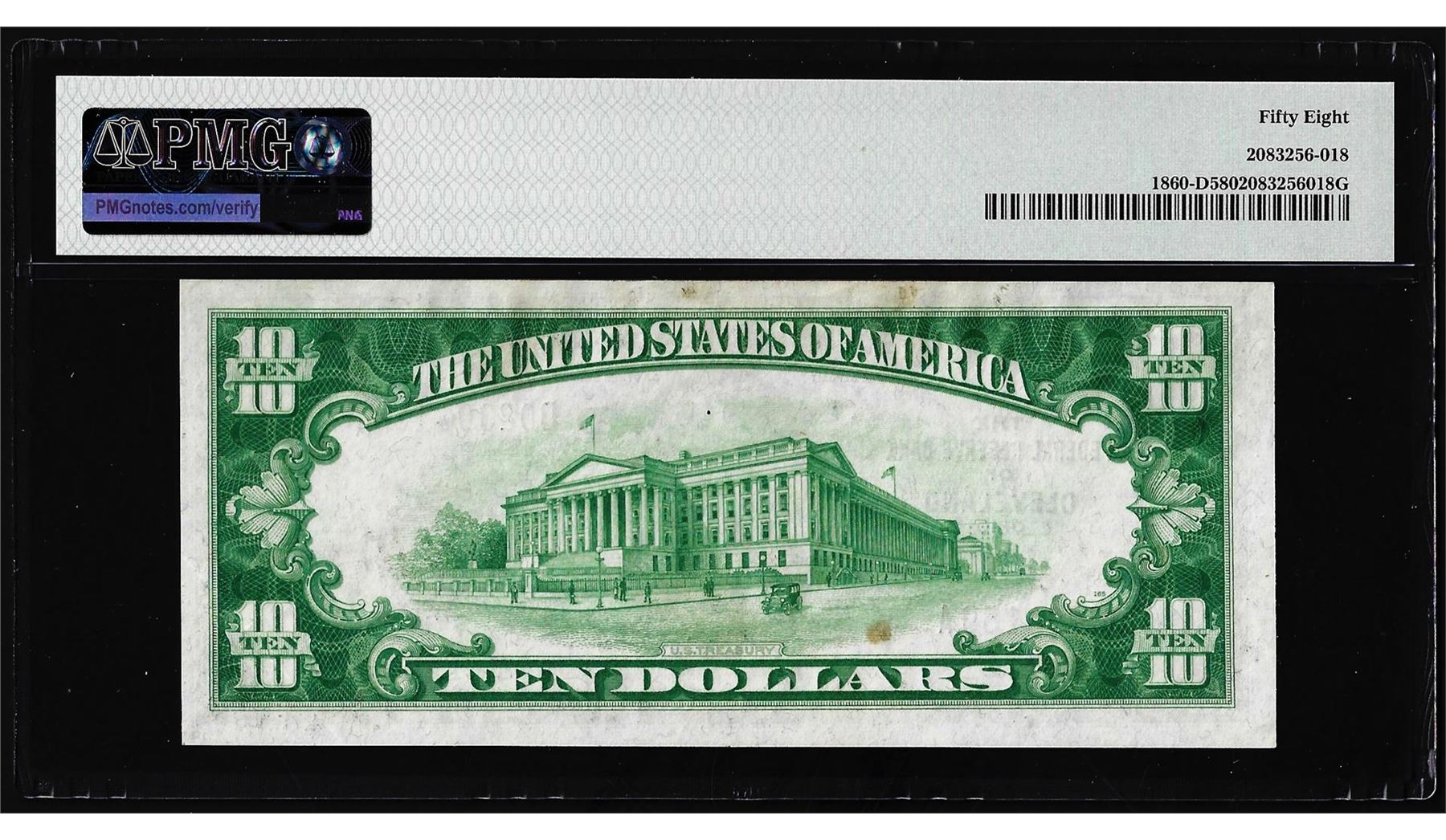 1929 $10 Federal Reserve Bank Note Cleveland Fr.1860-D PMG Ch. About Uncirculated 58