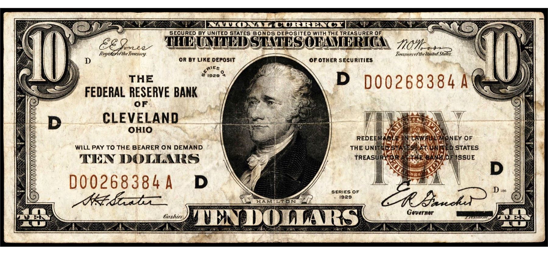 One 1929 $10 Federal Reserve Bank Note Cleveland.