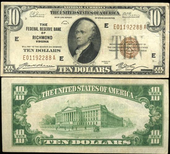 1929 $10 Federal Reserve Bank Richmond Note Crisp Circulated XF/AU Scarce (CUR-06234)