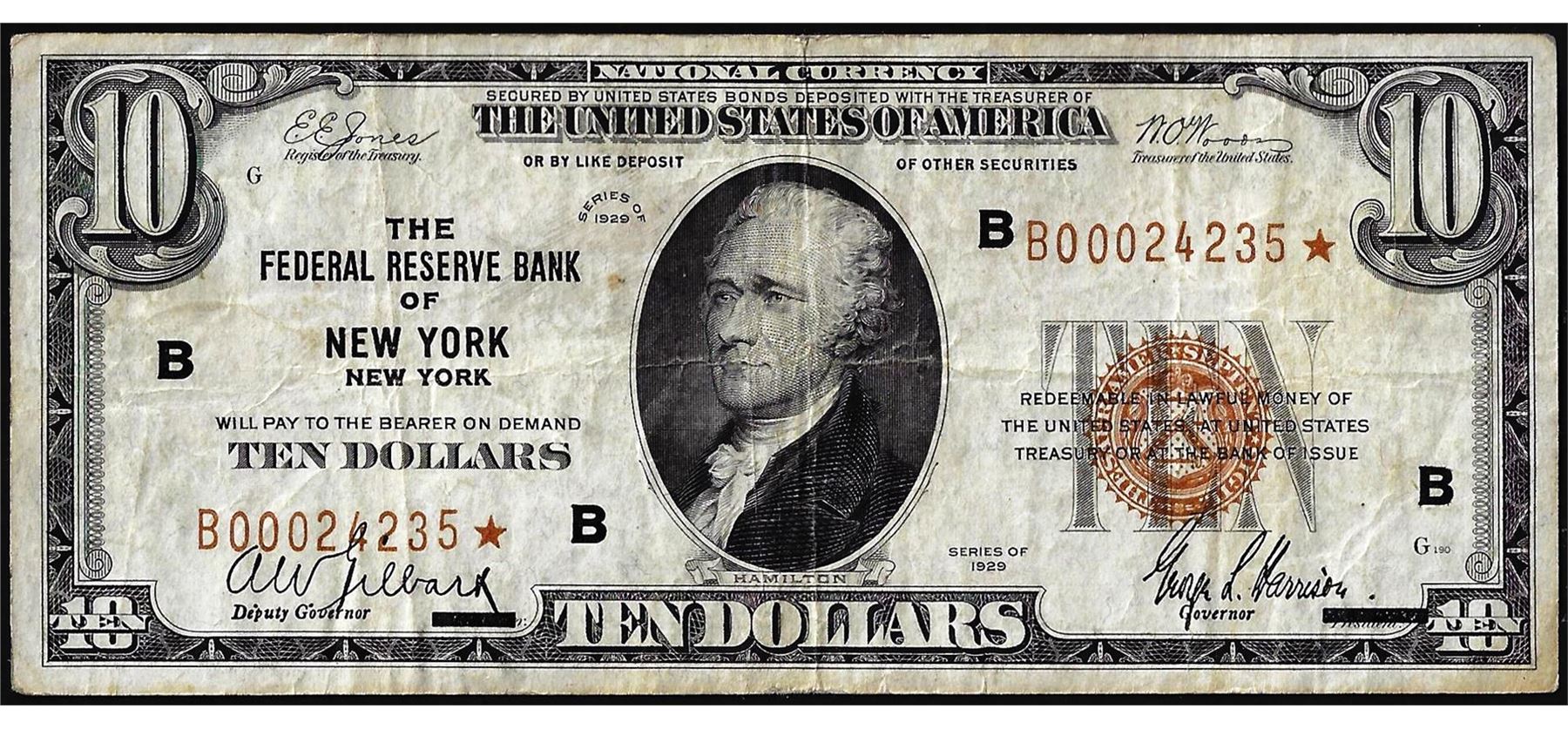 One 1929 $10 Federal Reserve Bank Star Note New York.