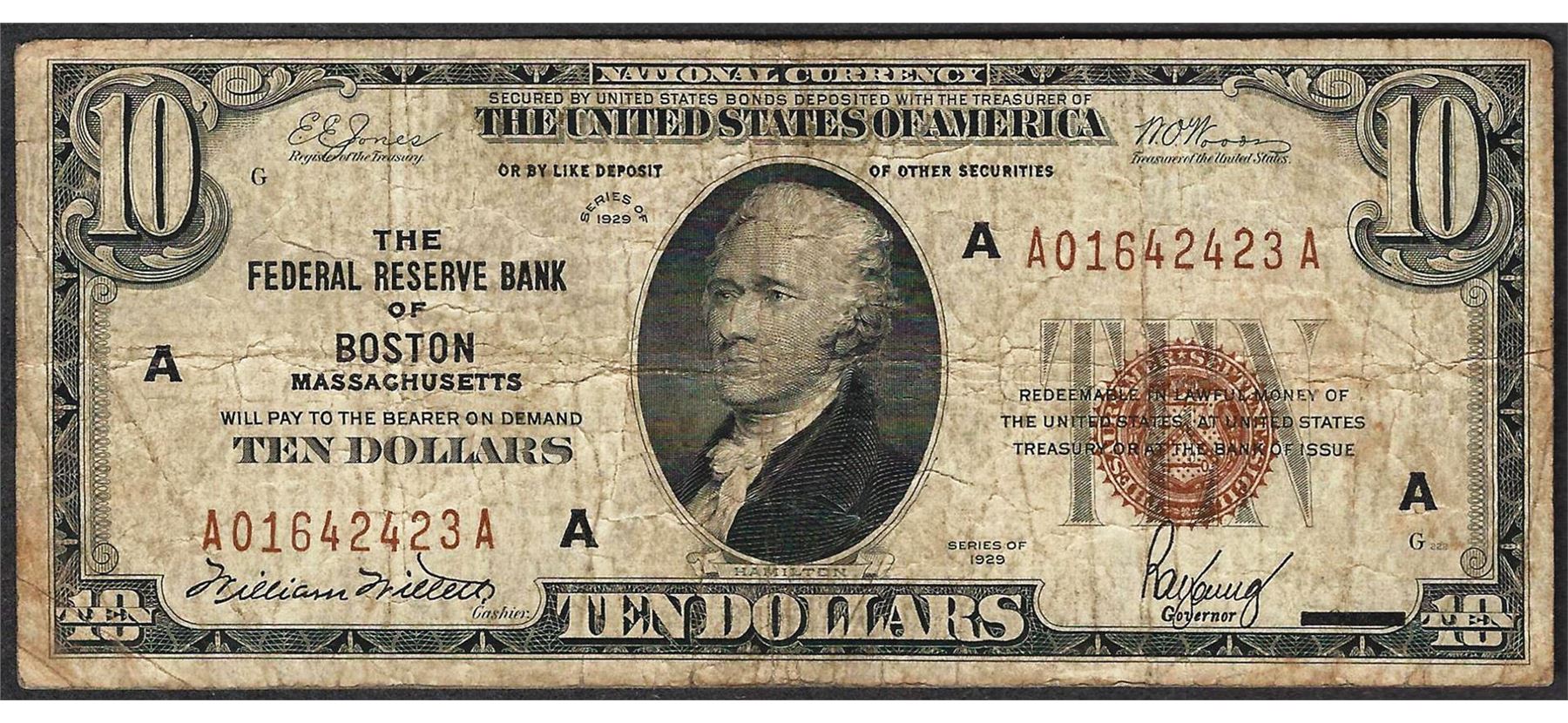 One 1929 $10 Federal Reserve Bank of Boston Note.