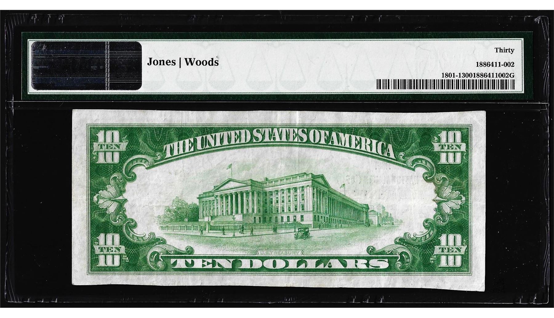 One 1929 $10 First NB Huntsville, Texas National Currency Note CH#4208 PMG Very Fine 30. PMG Certified.