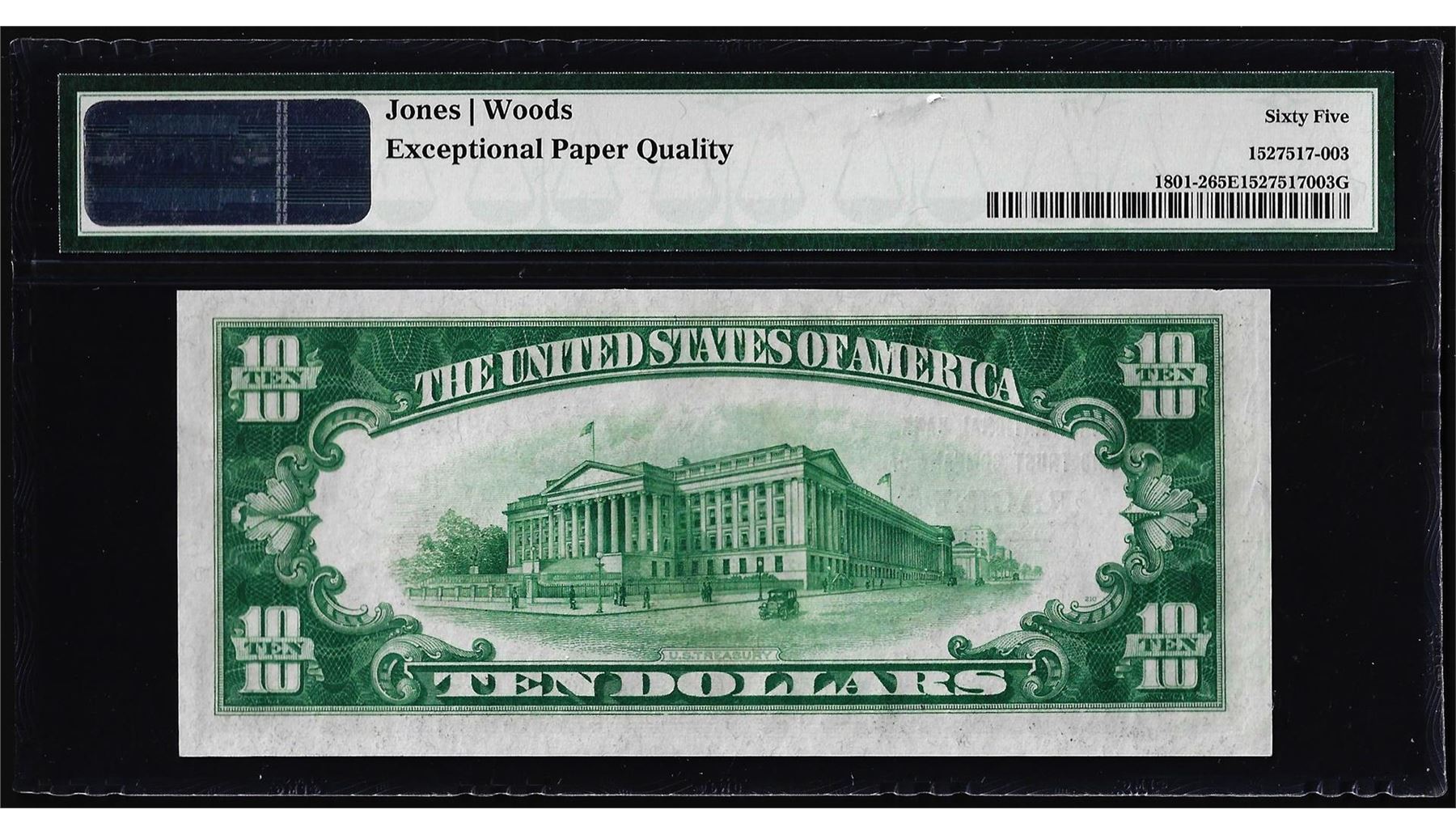One 1929 $10 First NB & Trust Racine, WI CH# 457 National Currency Note PMG Gem Unc. 65EPQ. PMG Certified.