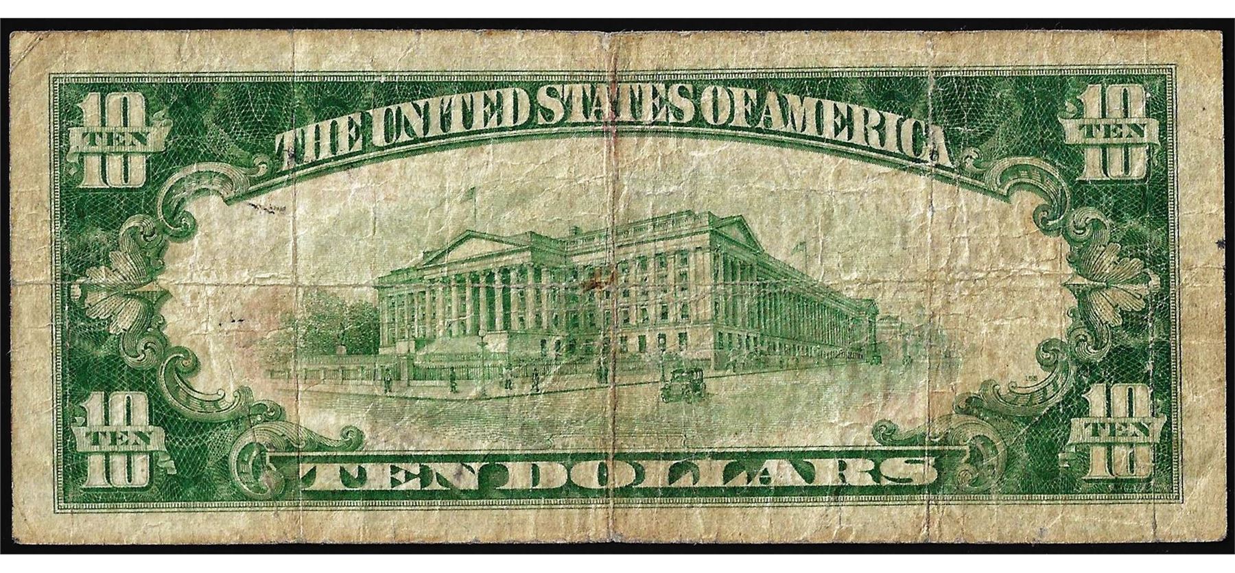 One 1929 $10 First NB of Washington Court House, Ohio CH# 13490 National Currency Note, please note there is a split in upper right.