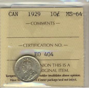 1929 10¢ ICCS MS64.