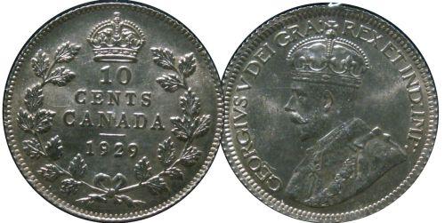 1929 10¢ ICCS MS65. Brilliant and lustrous. A sharp example.