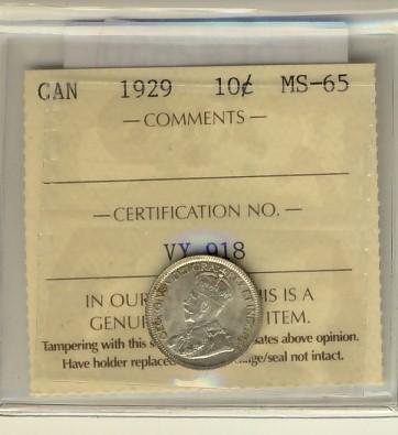 1929 10¢ ICCS MS65.