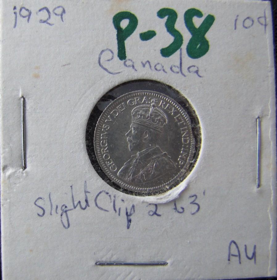 1929 10¢ MS62, clipped. Rarely seen on early issues. A nice ERROR coin.
